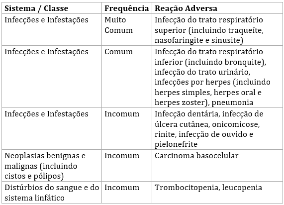 Uso concomitante de abatacepte com medicamentos bloqueadores do TNF (ex: adalimumabe, etanercepte, infliximabe, golimumabe, certolizumabe) está associado a risco aumentado de infecções graves