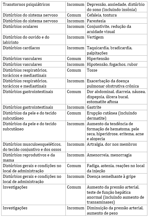 Vias de administração: Intravenosa (IV) e Subcutânea (SC).