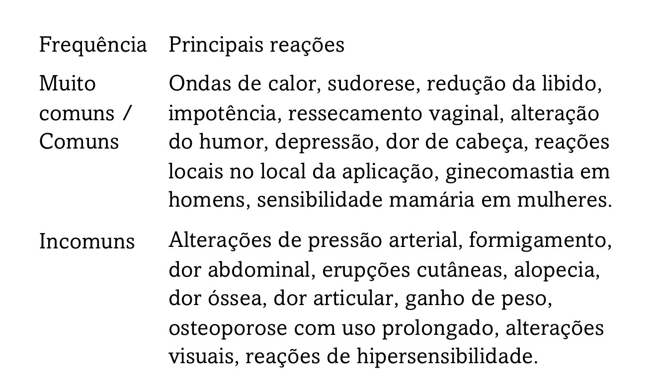 • Em homens com câncer de próstata, pode ocorrer exacerbação inicial dos sintomas (flare tumoral) nas primeiras semanas.