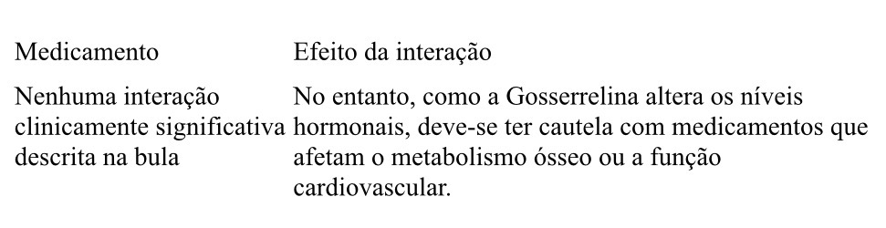 Contraindicado durante a amamentação, pois não se sabe se a gosserrelina é excretada no leite humano