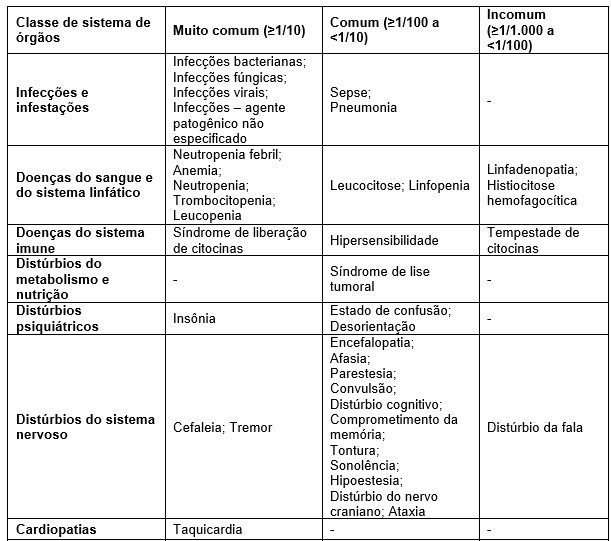 Risco de síndrome de liberação de citocinas e neurotoxicidade → monitoramento rigoroso.