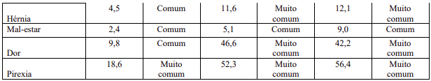 Resumo tabelado de reações adversas dos estudos clínicos