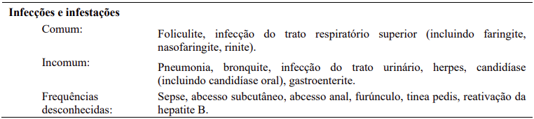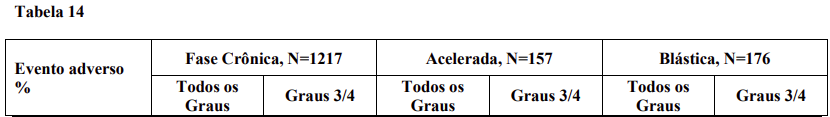 A tabela 14 descreve os eventos adversos não hematológicos mais frequentemente observados neste estudo.