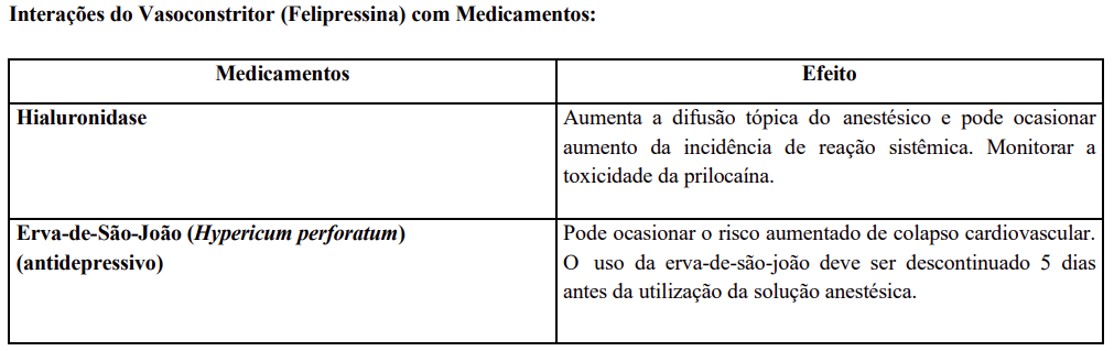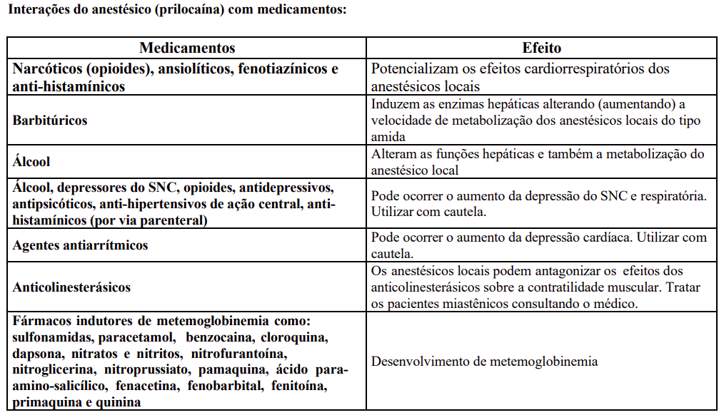 Reações adversas após a administração de cloridrato de prilocaína são similares em natureza das reações observadas com os outros AL do tipo amida. Essas reações são, geralmente, dose-dependentes e podem ser resultado de uma concentração plasmática elevada. A taxa de mortalidade é bastante reduzida o que transforma essa classe de medicamentos altamente segura (1/853.050). Os seguintes efeitos são os mais frequentemente relatados: