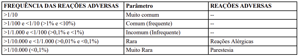 Parestesias: Lesão nervosa é a causa principal, podendo ocorrer por lesão cirúrgica ou química. Muitas são transitórias e desaparecem em 8 semanas, embora algumas reações possam permanecer permanentemente. MUITO RARA